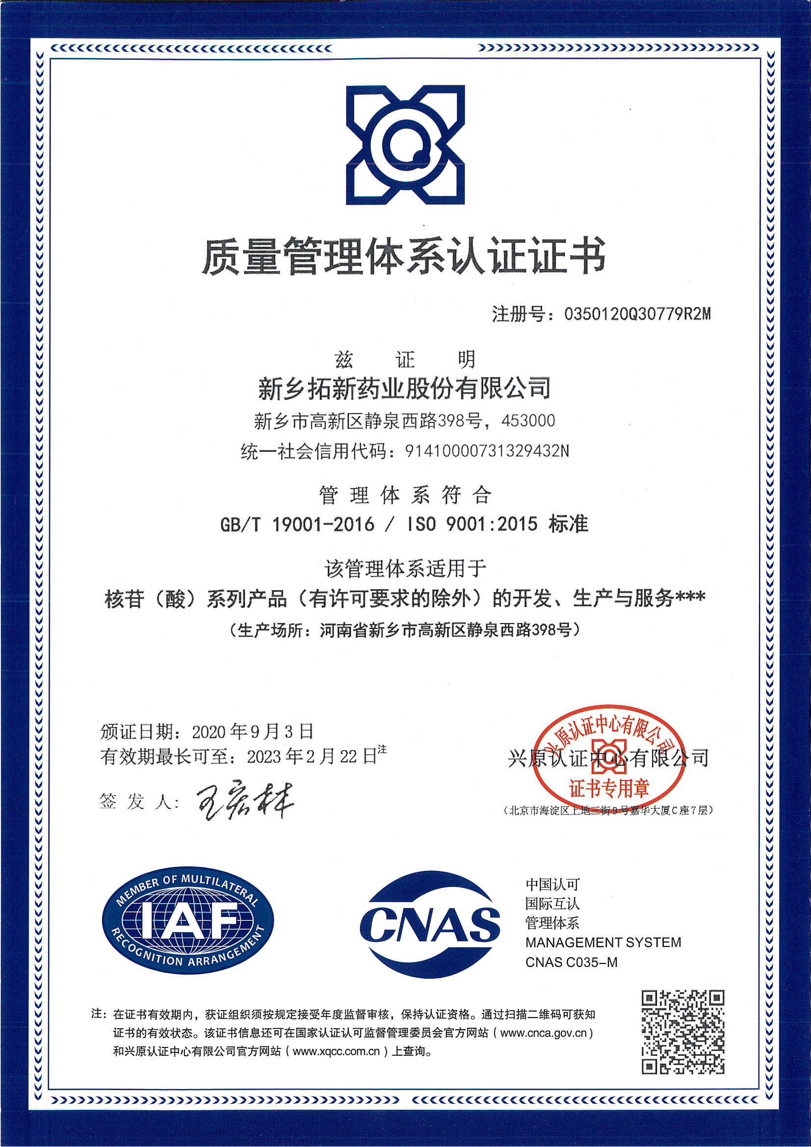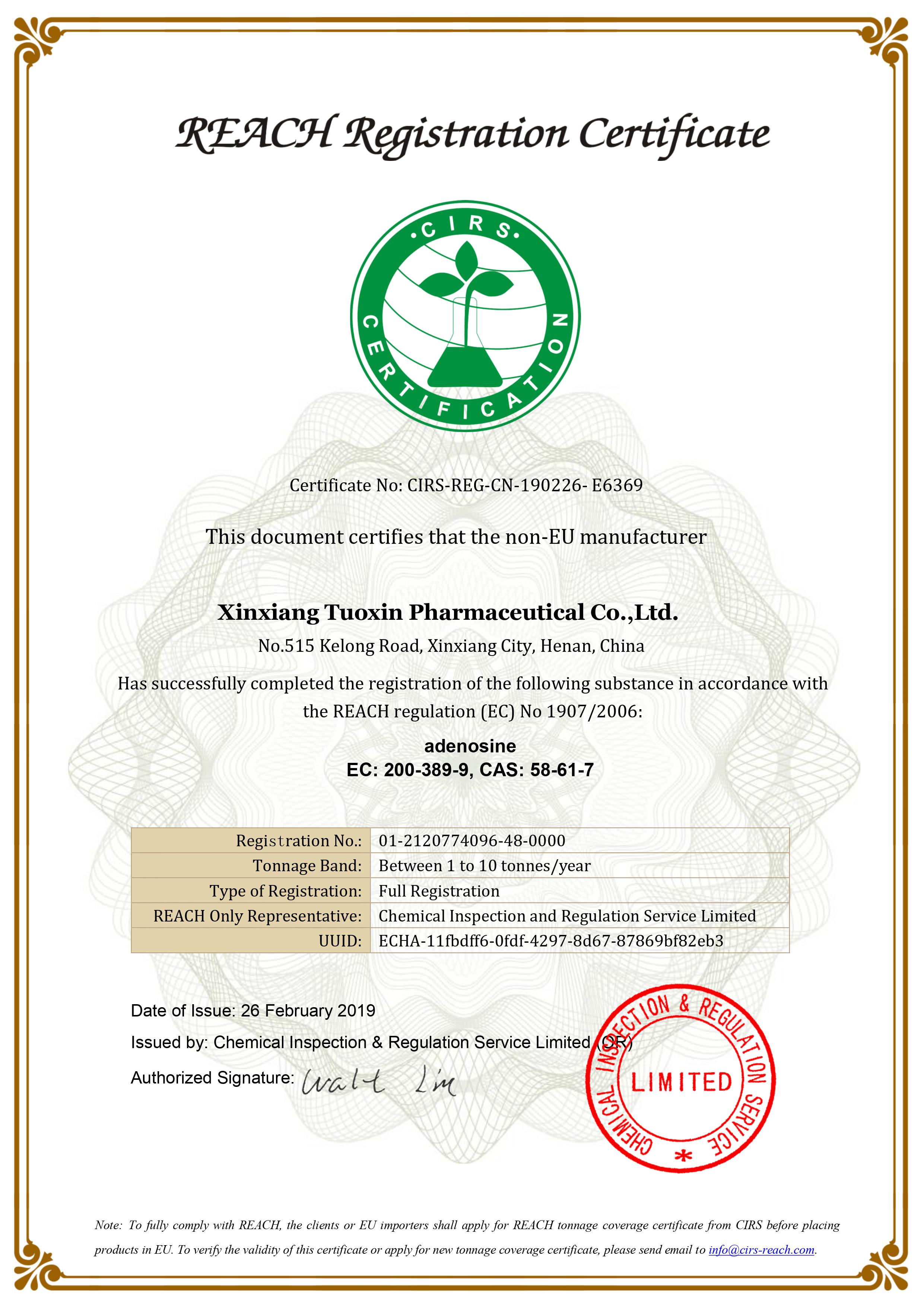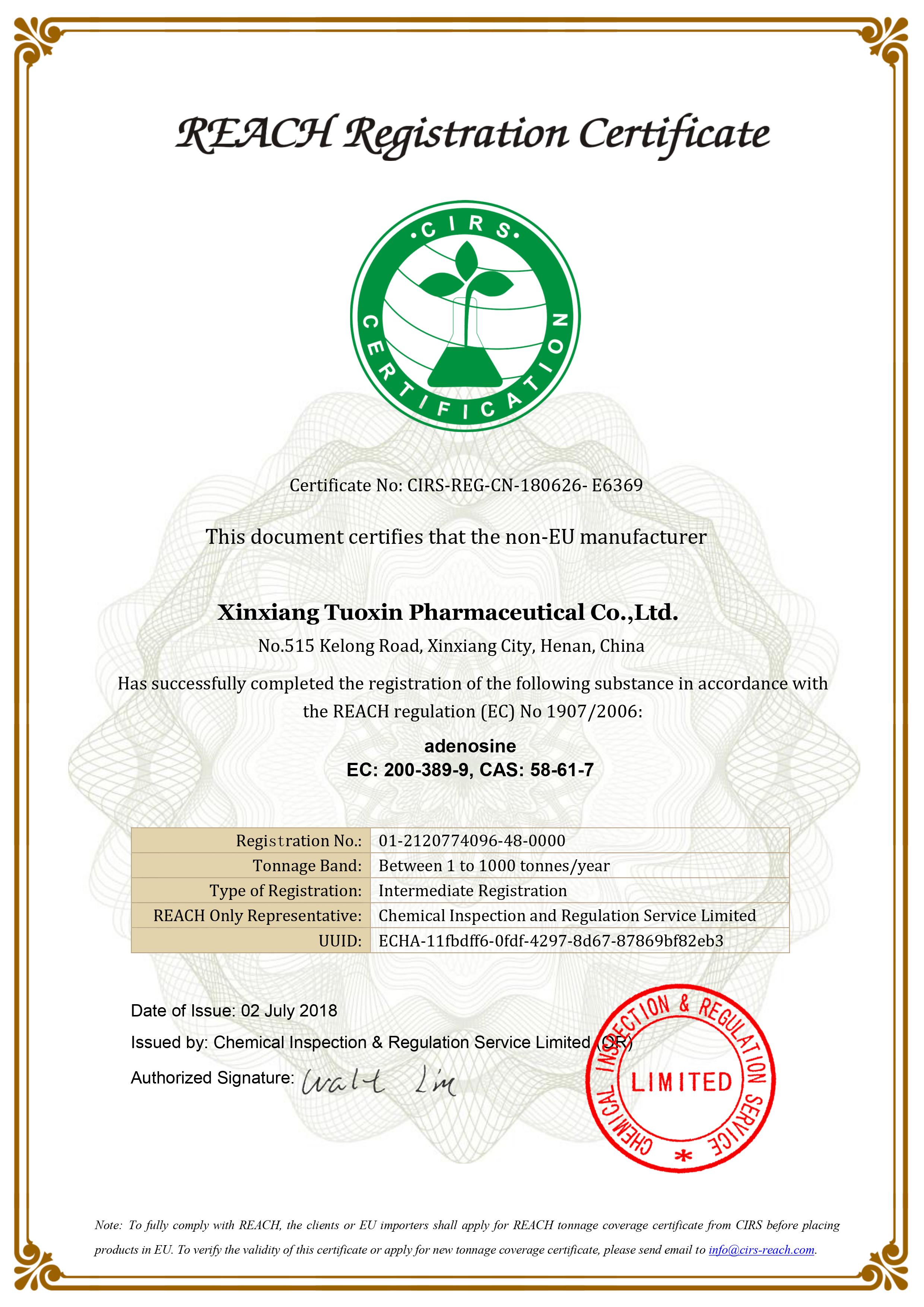 集團積極進行各類產(chǎn)品的國內(nèi)外認證和注冊工作,多個子公司產(chǎn)品通過了印度、烏茲別克斯坦DMF認證,多個醫(yī)藥中間體產(chǎn)品通過了日本、歐盟等國家和地區(qū)的官方認證,如歐盟REACH注冊證書、HALAL清真認證和KOSHER潔?認證等。